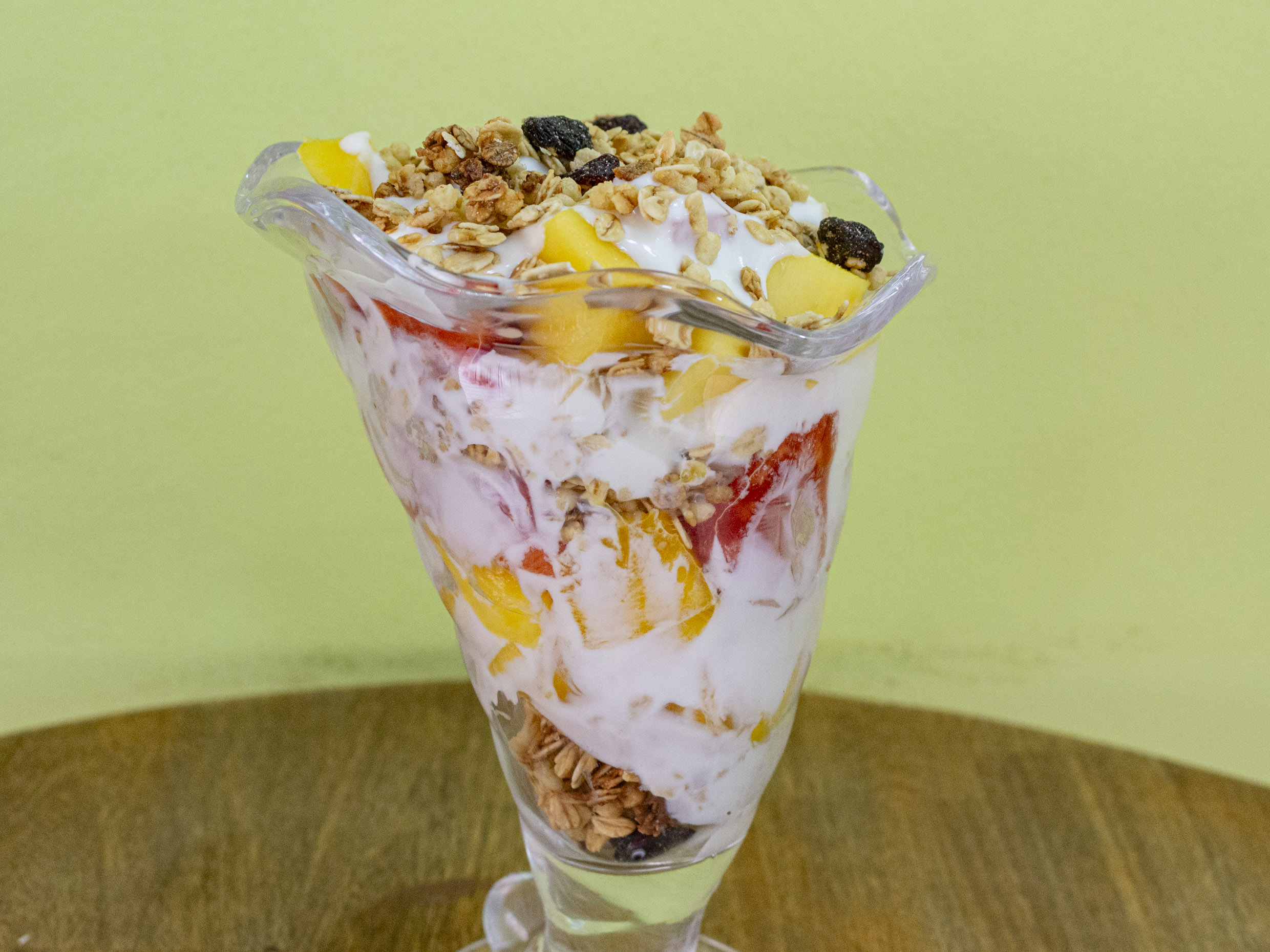 Yogurt griego, 2 frutas y granola.