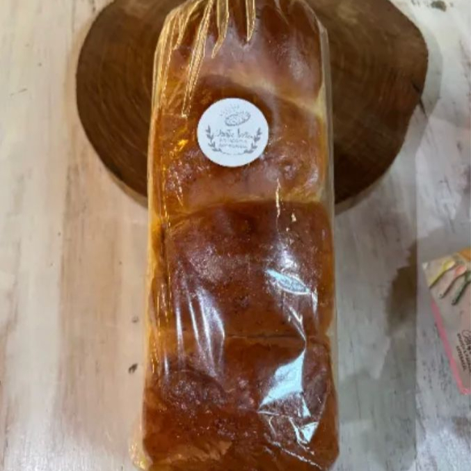 Pan leudado con masa madre 100% artesanal, con toques de queso y mantequilla.