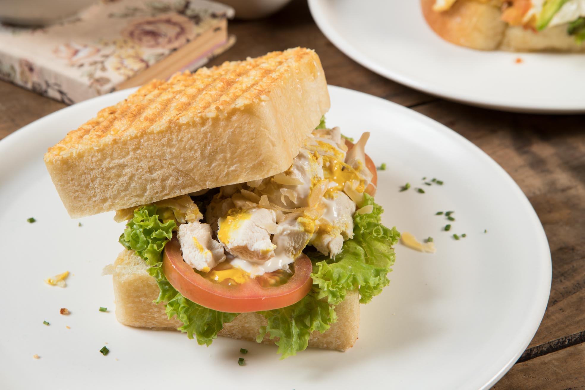 Nuestro sándwich con pechuga de pollo al grill, queso gruyere, tomate fresco, queso philadelphia, lechuga crujiente y una irresistible salsa de ajo. ¡una combinación de sabores que te encantará!.