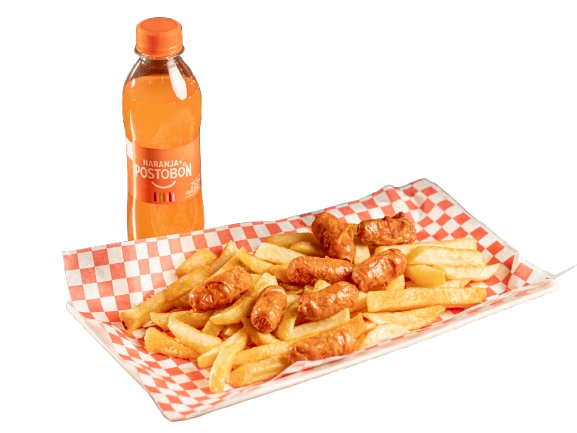 Combo con 5 deliciosos palitos de pechuga acompañados de papas a la Francesa y Gaseosa PET 250 a tu elección .