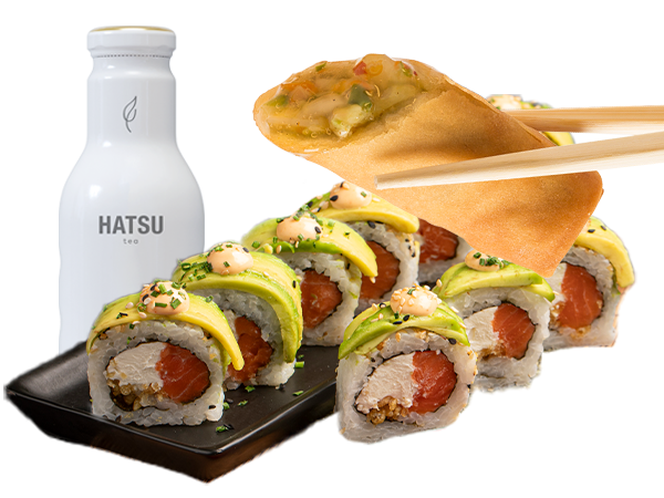 Rollo con pollo Mandariyaki y queso crema, coronado con salsa cítrica y mayonesa sriracha suave. Un bocado jugoso, cremoso y lleno de frescura oriental.