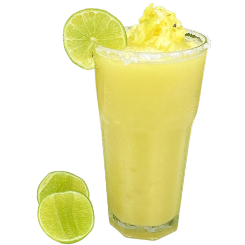 Tortilla de harina, pollo al pastor, piña asada, frijol refrito, lechuga, guacamole y sour cream.