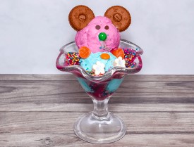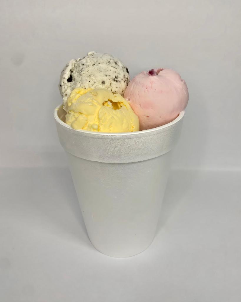 3 Bolas de helado, sabores a elegir, gomitas barquillos y dulces del día.