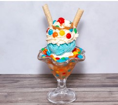 2 Bolas de helado sabores a elegir, M&M, salsa de arequipe, barquillos, cereza, chantilly.