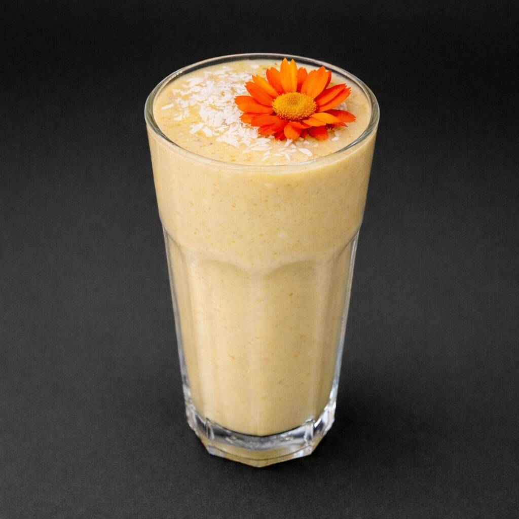 Smoothie tropical cremoso donde la piña fresca y el coco se mezclan con la suavidad de la leche de almendras y el yogurt. La avena aporta cuerpo y los dátiles un dulzor natural, logrando un sorbo fresco, nutritivo y delicadamente dulce.