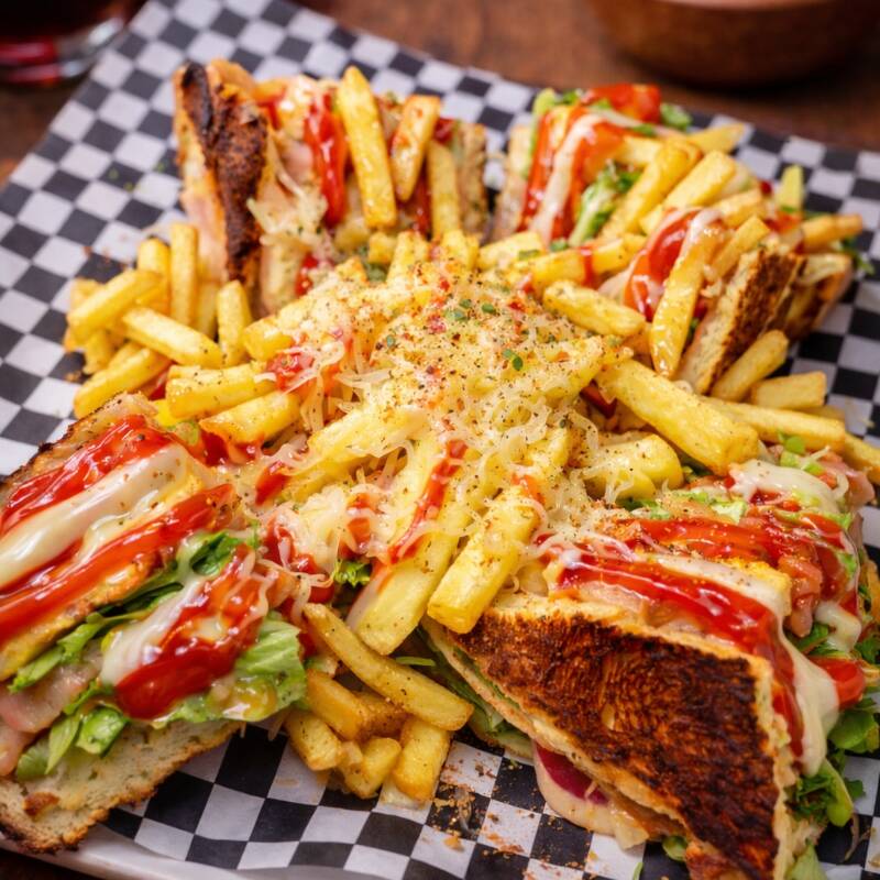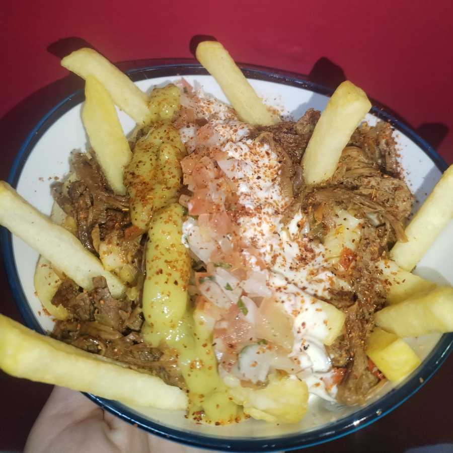 Papas a la francesa bañada en queso mozzarella gratinado acompañado con la proteína de tu preferencia (Pollo, Carne desmechada, Cerdo). Con un toque de guacamole, sour cream y pizca de Tajín.