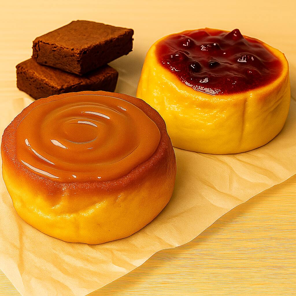 2 Cheesecakes a elección + 2 brownies pequeños. perfecto para compartir entre dos.