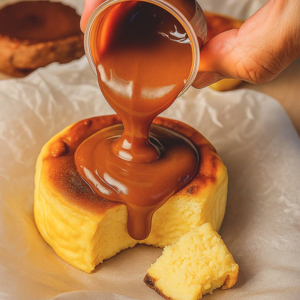 Dulzura perfecta: nuestra tarta de queso horneada con topping suave de dulce de leche artesanal. porción individual 250 gramos.