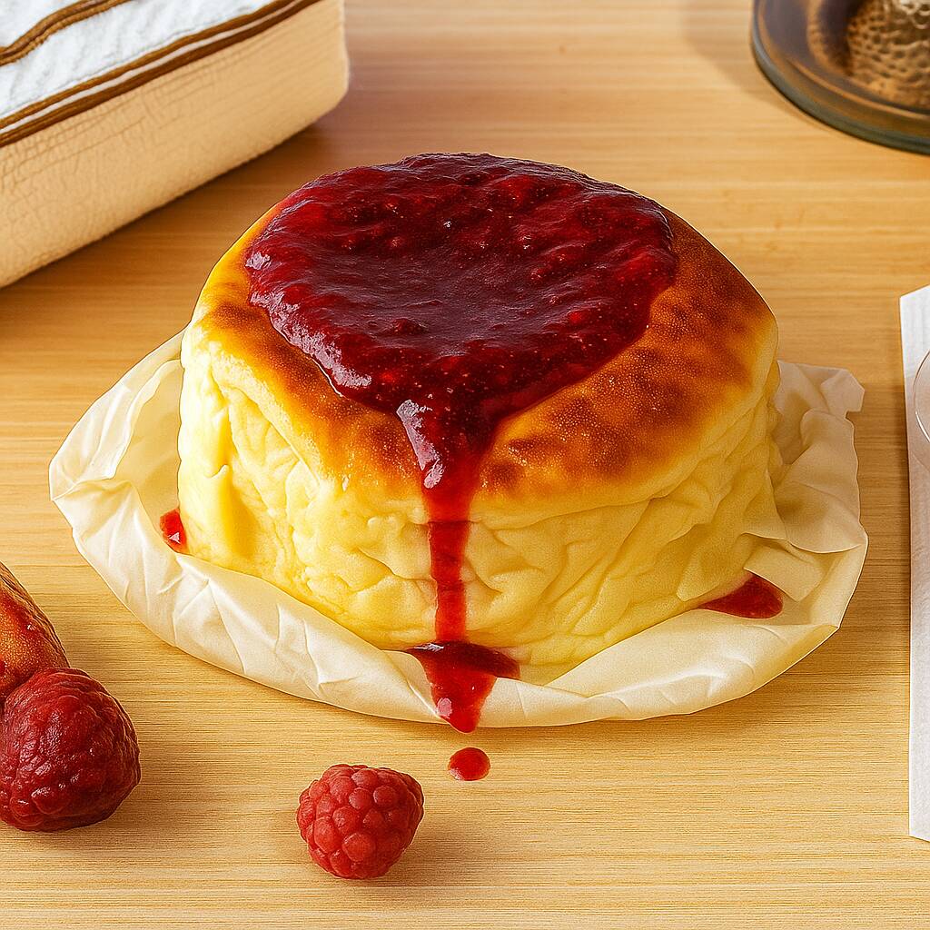 Cremosa, suave y horneada al estilo artesanal. una tarta de queso ligera, con notas de vainilla y un final delicado.