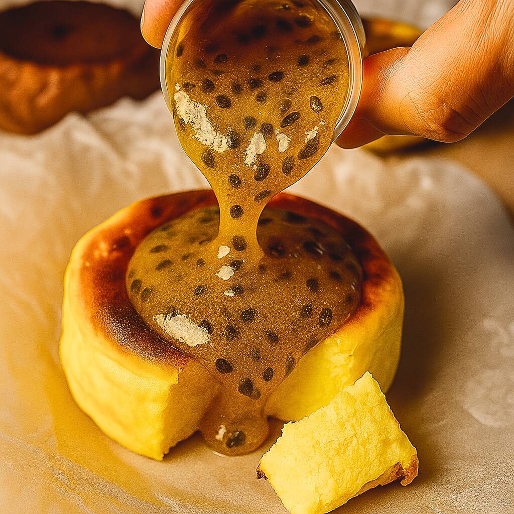 Envuelve tus sentidos entre lo ácido de nuestra mermelada fresca de maracuyá y la delicada-cremosa porción horneada de tarta de queso. porción individual 250 gramos.