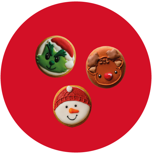 Endulza la temporada con nuestras galletas de vainilla decoradas a mano. Inspiradas en los íconos más alegres de la Navidad, llenan cada momento de color, dulzura y espíritu festivo