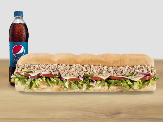 Tu footlong de atún favorito, de 30 centimetros en combo, y armándolo con una bebida, papas o galleta para acompañarlo