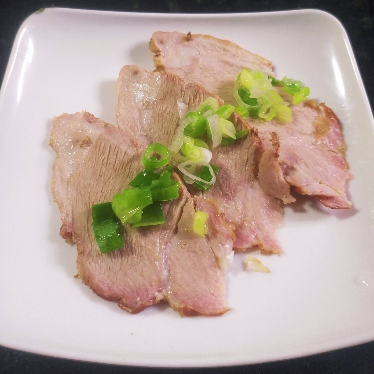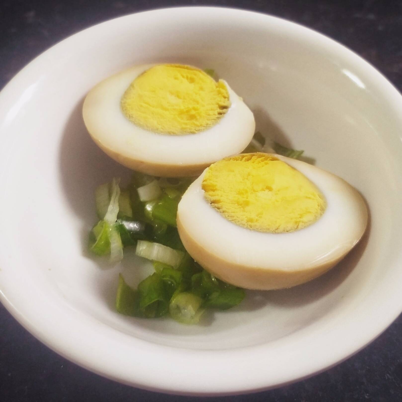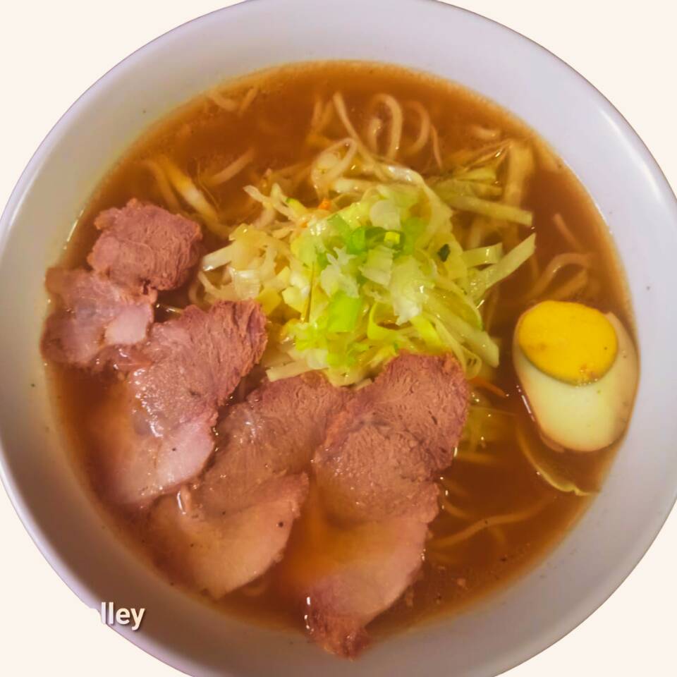 Rico caldo a base de pollo, cerdo y vegetales de temporada, miso, con pastas cocidas, cebollín, huevo y cerdo.