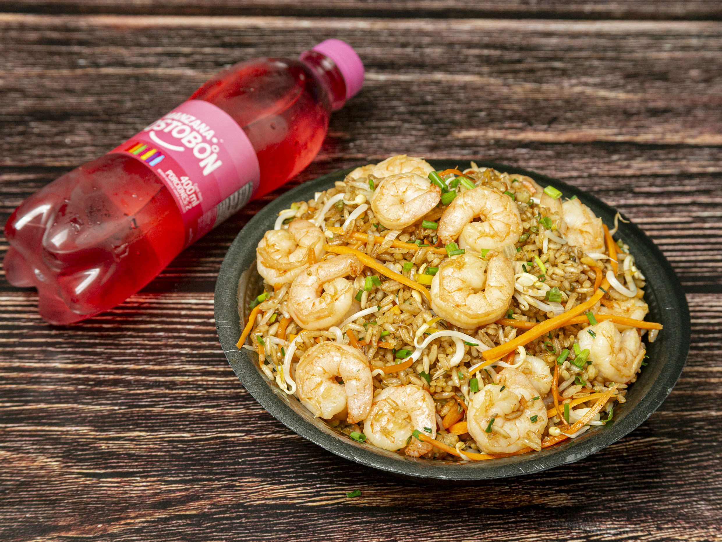 Arroz más 23 camarones y bebida (1 persona).