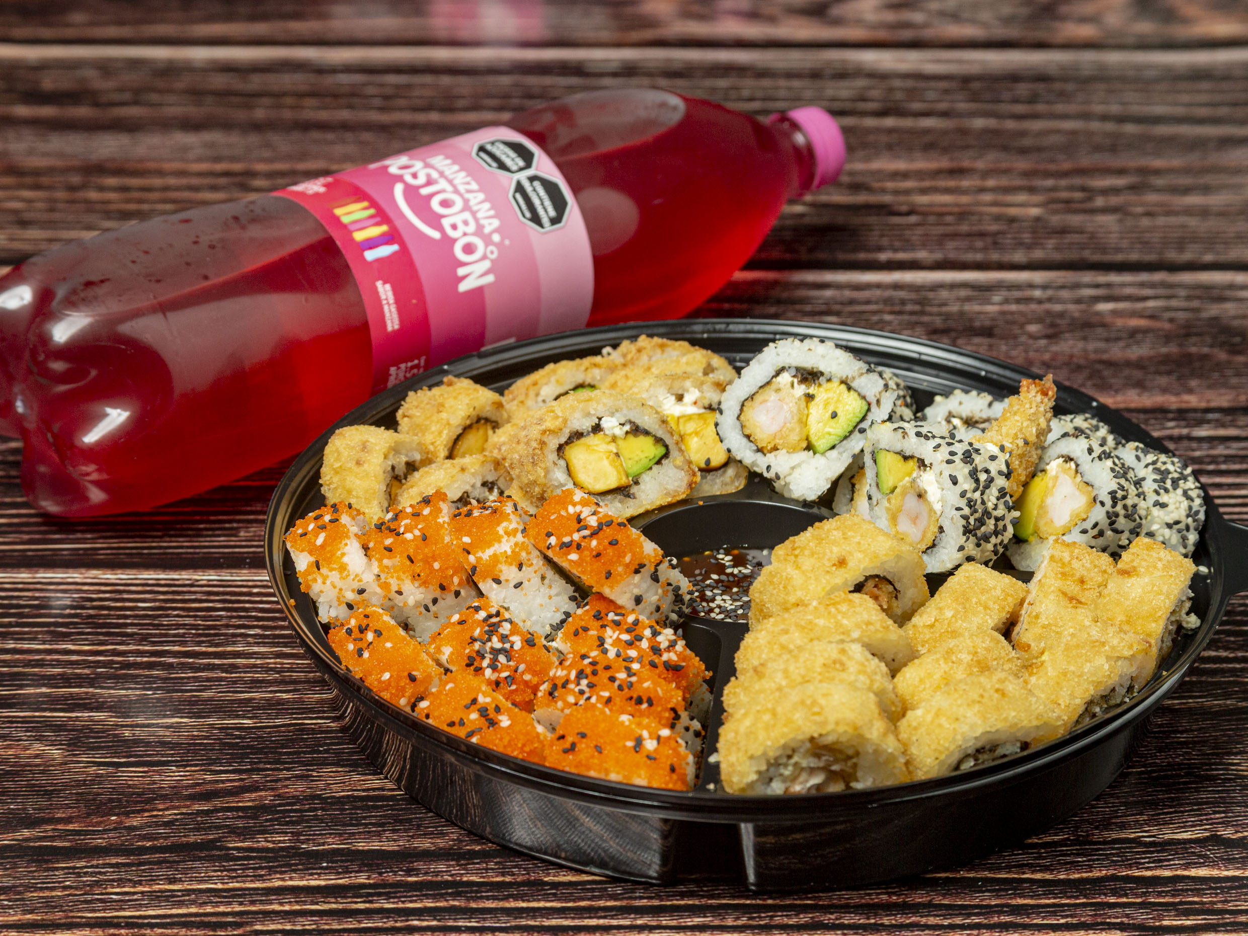 40 Bocados (10 crispi tempura, 10 california, 10 salmón tempura y 10 langostino) más 1 gaseosa 1.5 l.