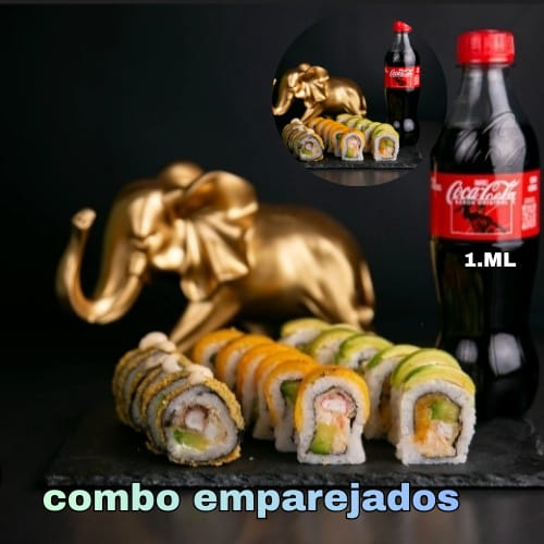 California Roll*1 + Dinamita Y California*1 + Platino Oriental Apanado Roll*1 + Apanado Rolls*1 + Cocacola 1.Ml*1 + 10: Trocitos de Palmitos*1 + Croquetas 2*1 + Langostino 2**1