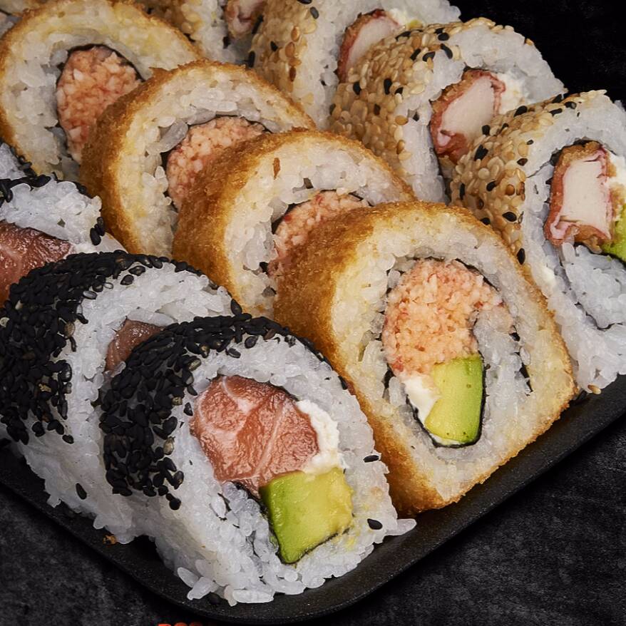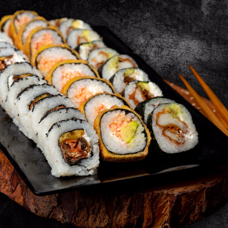 Philadelphia Roll*1 + Oriental Tempura Roll*1 + Salmón Skim Roll*1 + Dinamita Rools*1 + OREO Crunk*1 + Latín Roll*1