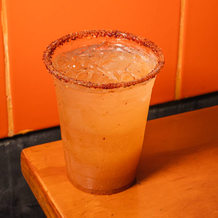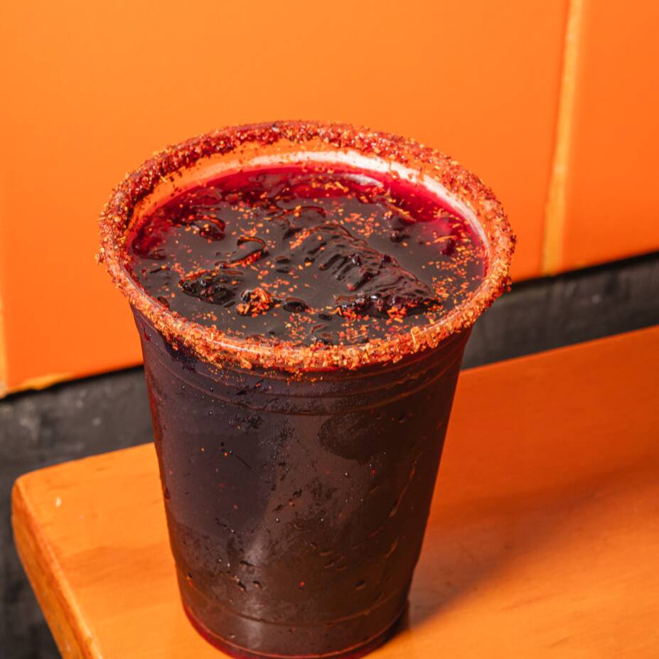 Mazorca dulce bañada en mantequilla y sour cream, apanada en queso, tajín y limón.