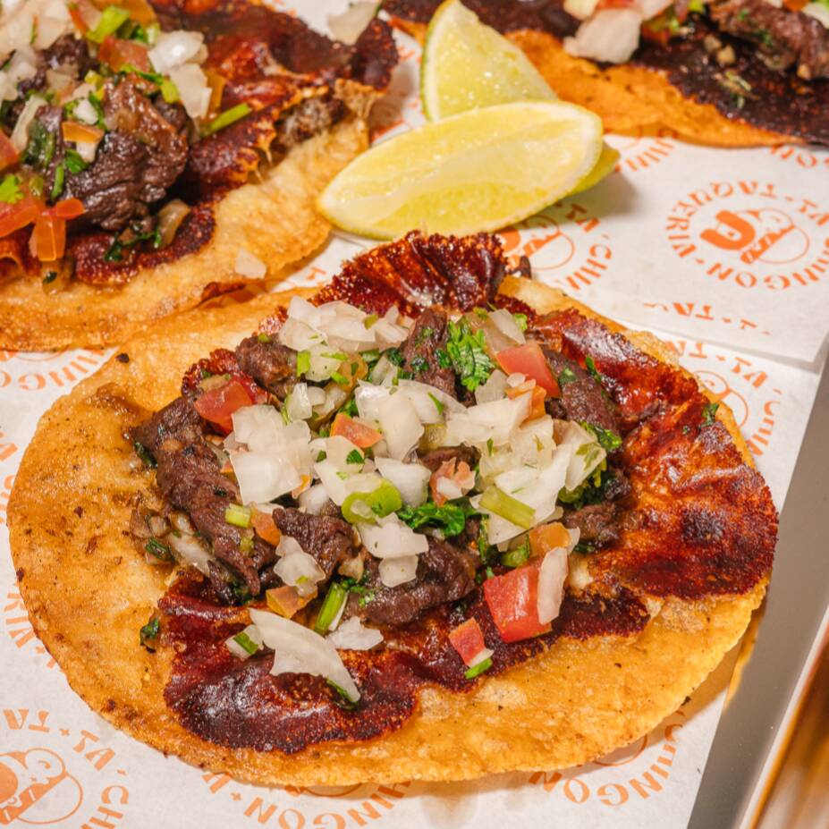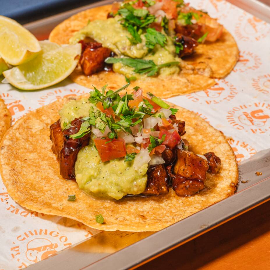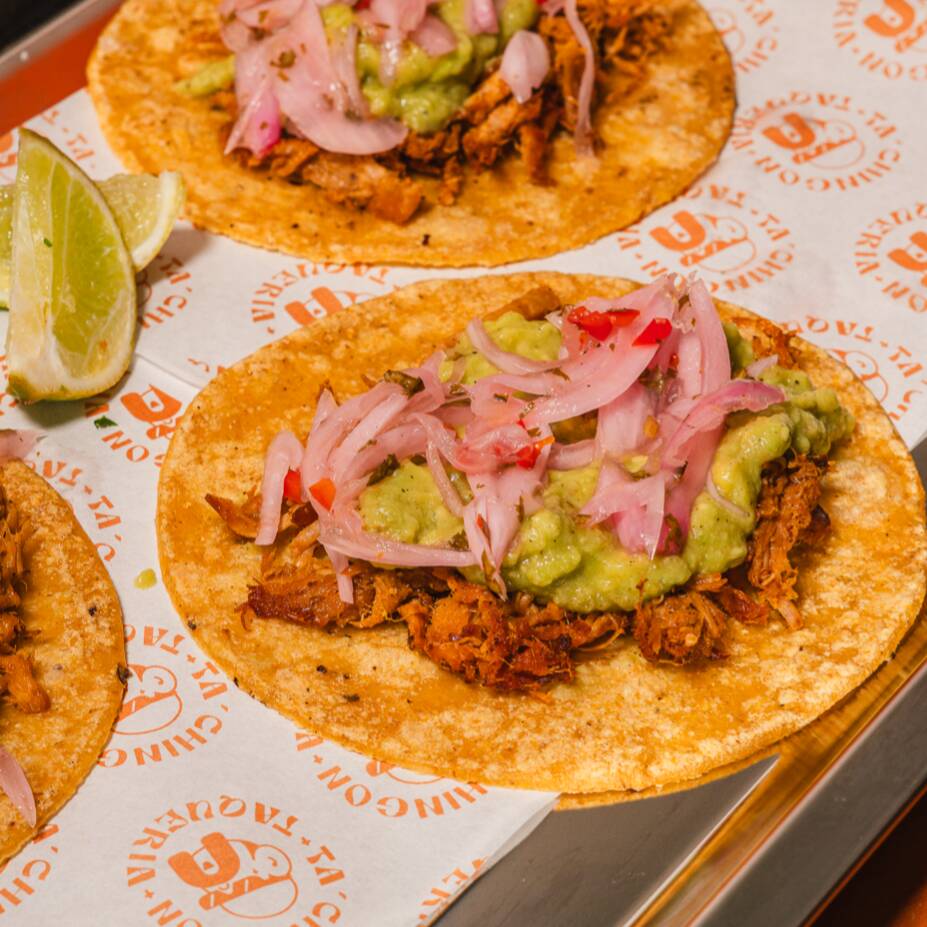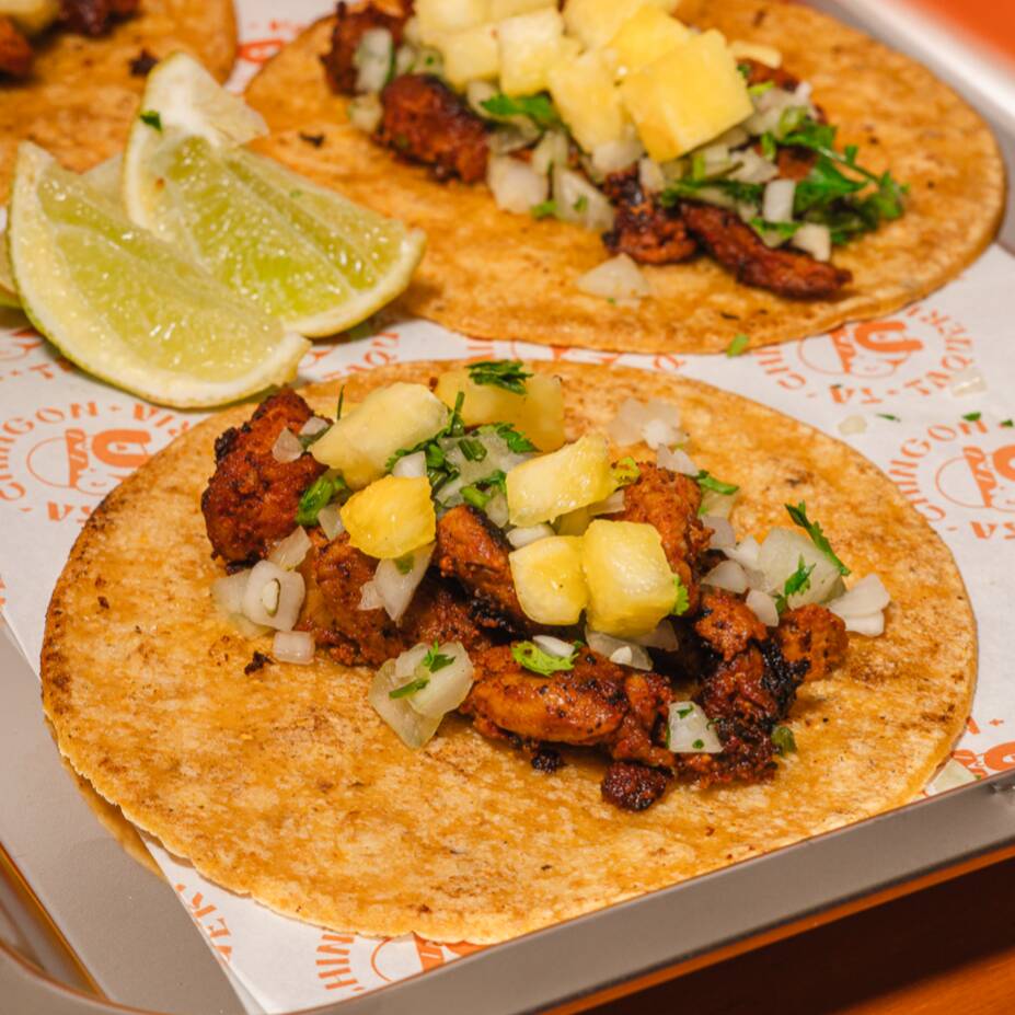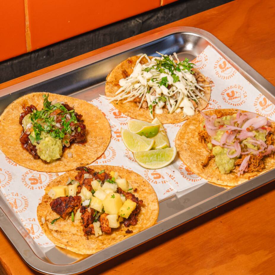 4 Tacos (1 cochinita pig, 1 pastor og, 1 Pollo honey y 1 chicharrón).