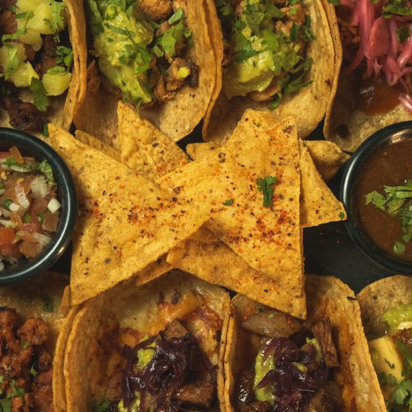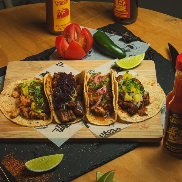 un recorrido por los sabores mas emblematicos de nuestra cocina servido en 12 tacos para compartir 2 tacos pastor, 2 tacos cochinita: 3 salsas artesanales,totopos con guacamole al centro