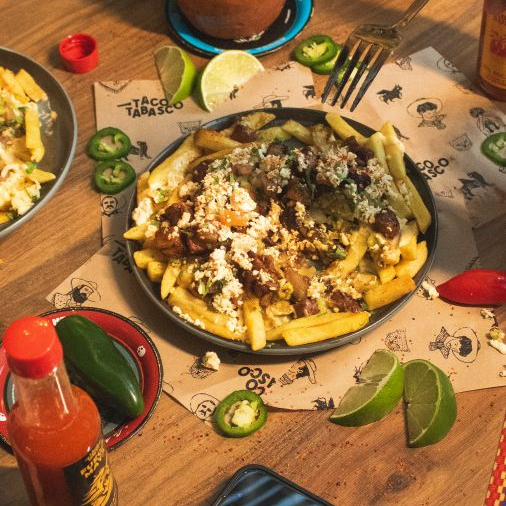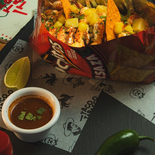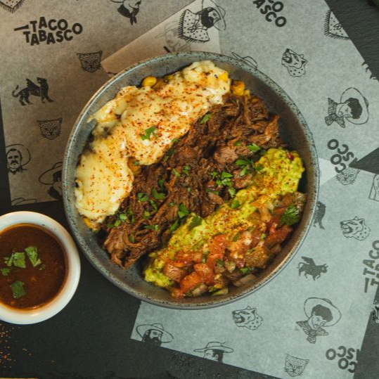 Con birria, mix de quesos, cebolla encurtida, guacamole y salsa tabasco sunset de la casa. Acompañados con consomé para intensificar el sabor.