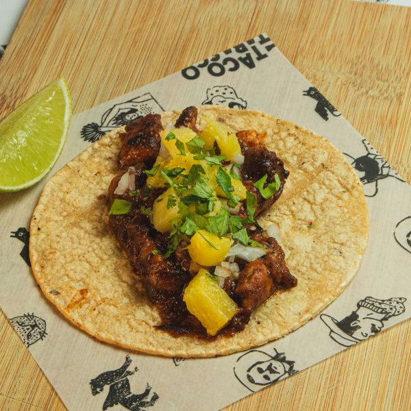 Orden x3 Cerdo marinado, piña asada, cebolla y cilantro. Acompañado de limón.