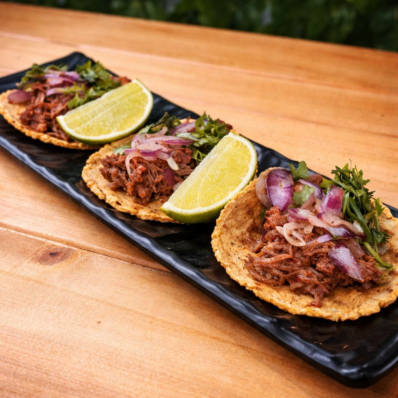 Orden de 3 tacos, Res suave y jugosa, cocida a fuego lento en su propio caldo, incluye cup de birria