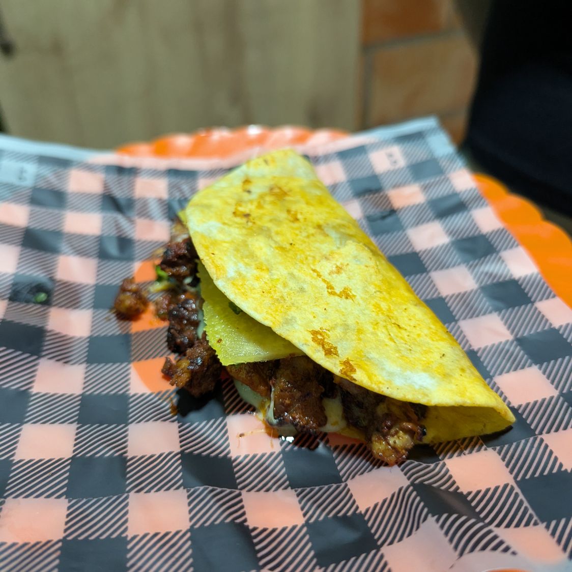 Pastor con quesito derretido en tortilla de harina. ¡La combinación que conquista corazones!