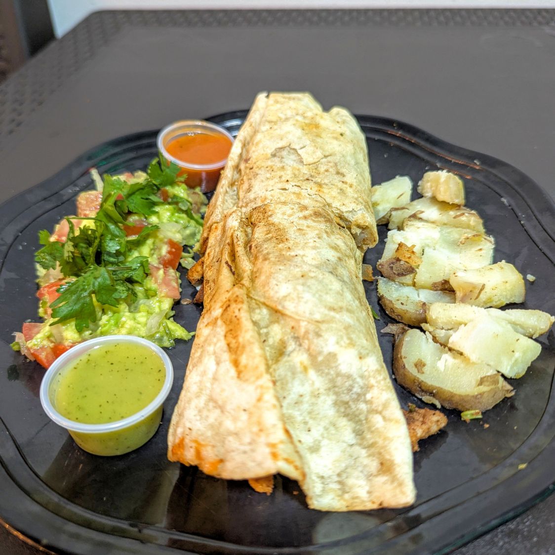 La birria se fue de viaje... ¡y volvió en versión gigante! Envueltito con guacamole, frijoles y pico de gallo.