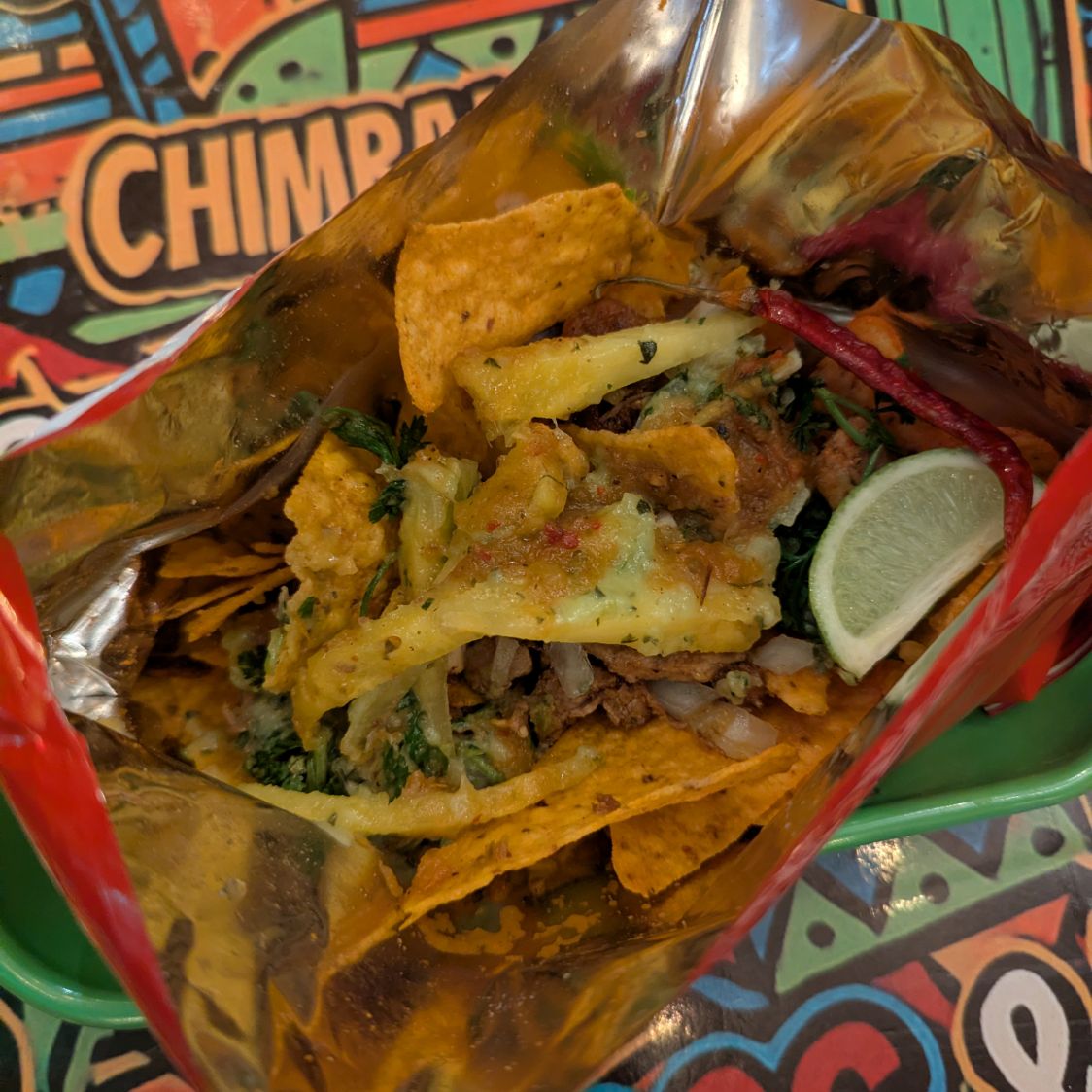 Doritos de queso(34gr) crujientes cargados con carne al pastor, cebolla fresca, cilantro y nuestras salsas de la casa. El balance perfecto entre lo dulce, lo especiado y lo picante en un antojo callejero que nunca falla.