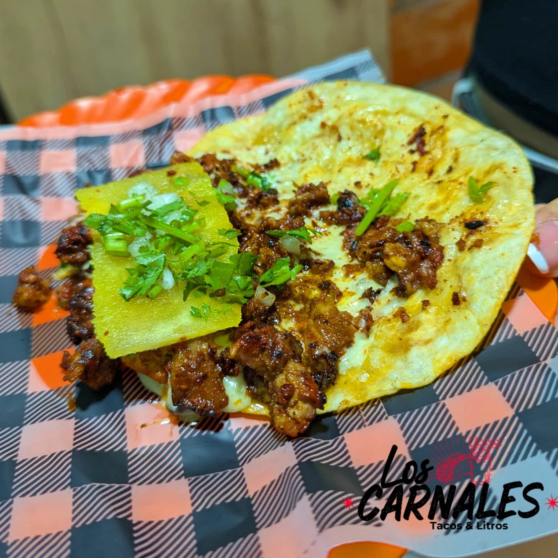 Doritos de queso crujientes cargados con carne al pastor, cebolla fresca, cilantro y nuestras salsas de la casa. El balance perfecto entre lo dulce, lo especiado y lo picante en un antojo callejero que nunca falla.