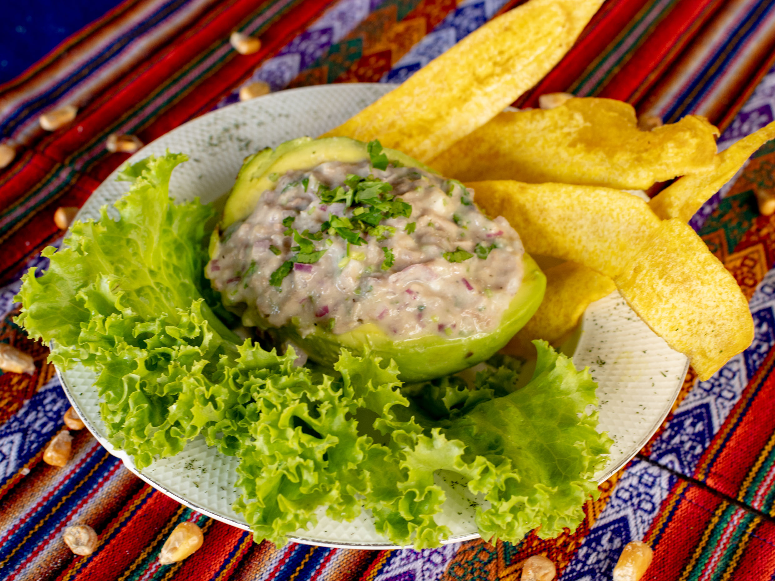Aguacate relleno de Atún o Pollo, Acevichado.