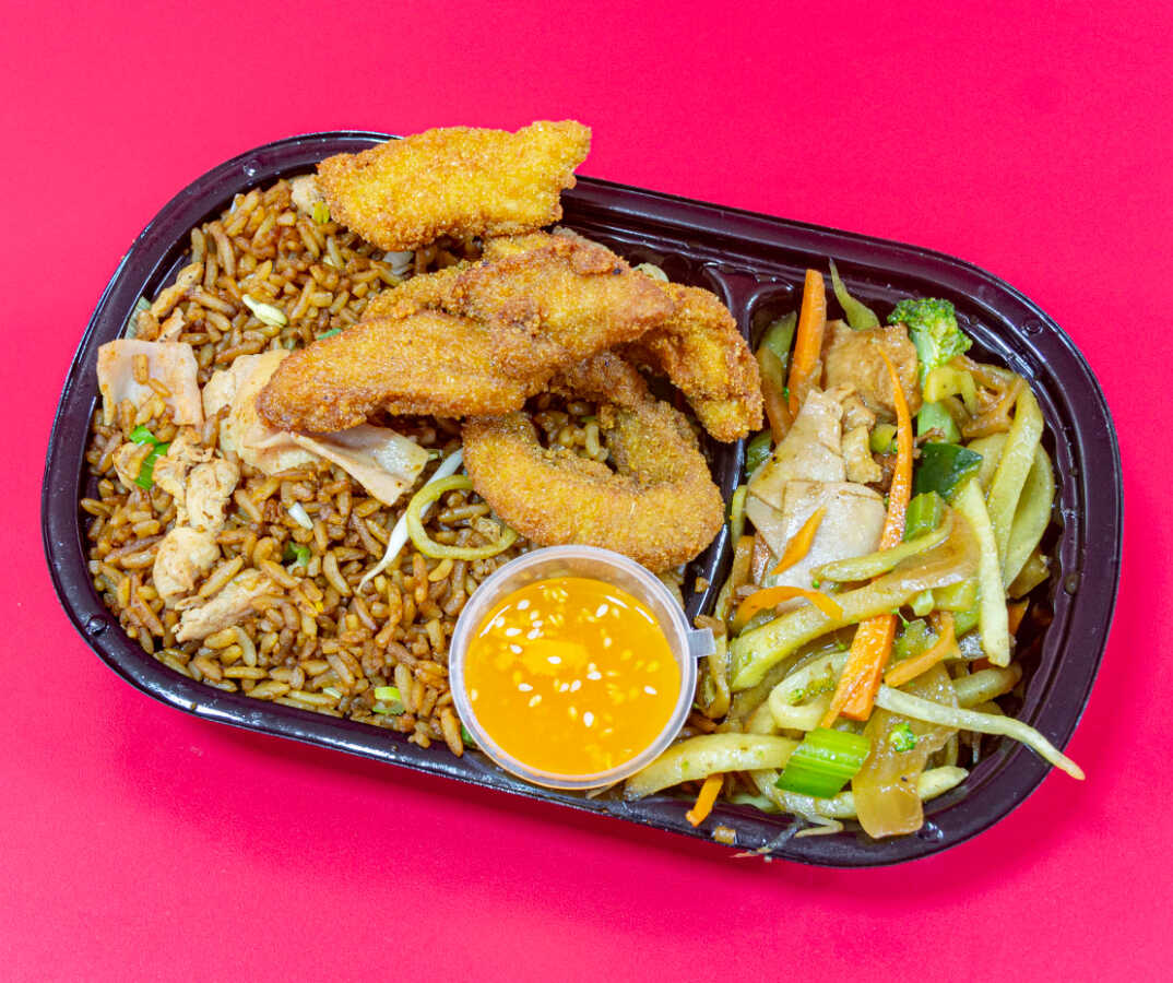 Una orden de pollo al naranja mediano para compartir en familia.