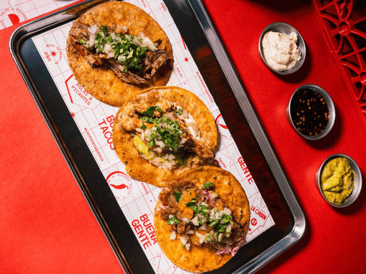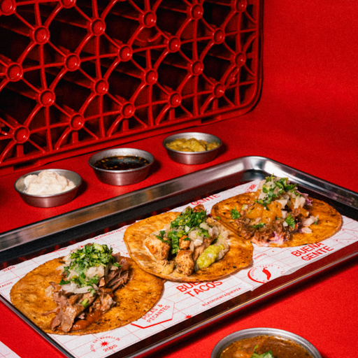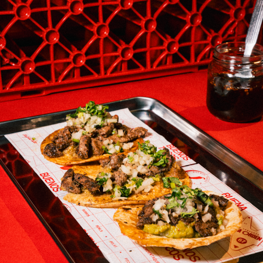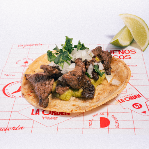 3 Tacos de Tortilla de maíz rellena de arrachera de res jugosa y bien sazonada.