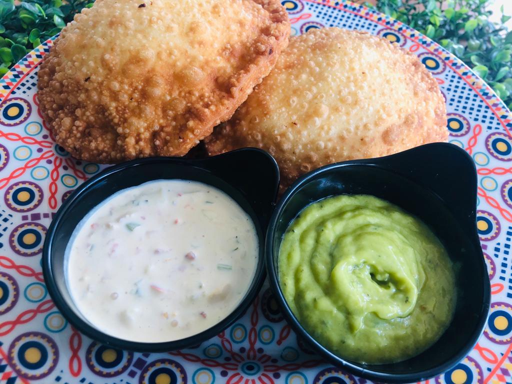 4 mini empanadas rellenas ( 1 carne/queso, 1 pollo/ queso, 1 queso, 1 caraota con queso ).
