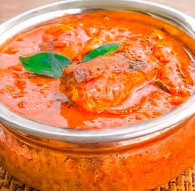 Pollo a la mantequilla en una salsa de tomate, especias especiales y nivel de picante a elección.