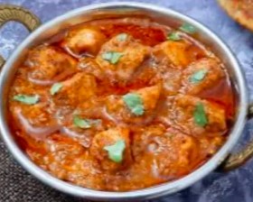 Queso marinado cocinado en masala especial, salsa de cebolla, tomates, ajo, jengibre y nivel de picante a elección.