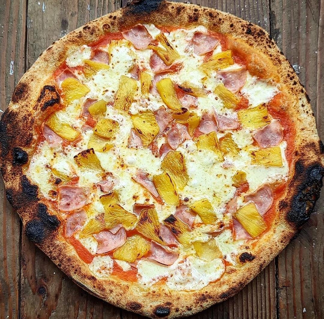 35cm 6 generosas porciones ,Masa artesanal, salsa napolitana, queso mozarella, piña caramelizada.