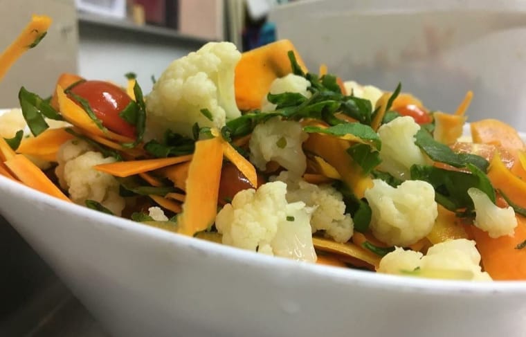 Elaborada con los mejores y frescos ingredientes dentro de los que se destacan, lechuga crespa, tomate, cebolla, zanahoria, remolacha, brócoli, coliflor, zuccini, calabacín, proteína de champiñones y tofu, acompañada con aderezo vegano 4 onzas, incluye guandolo con flor de Jamaica o jugo natural.