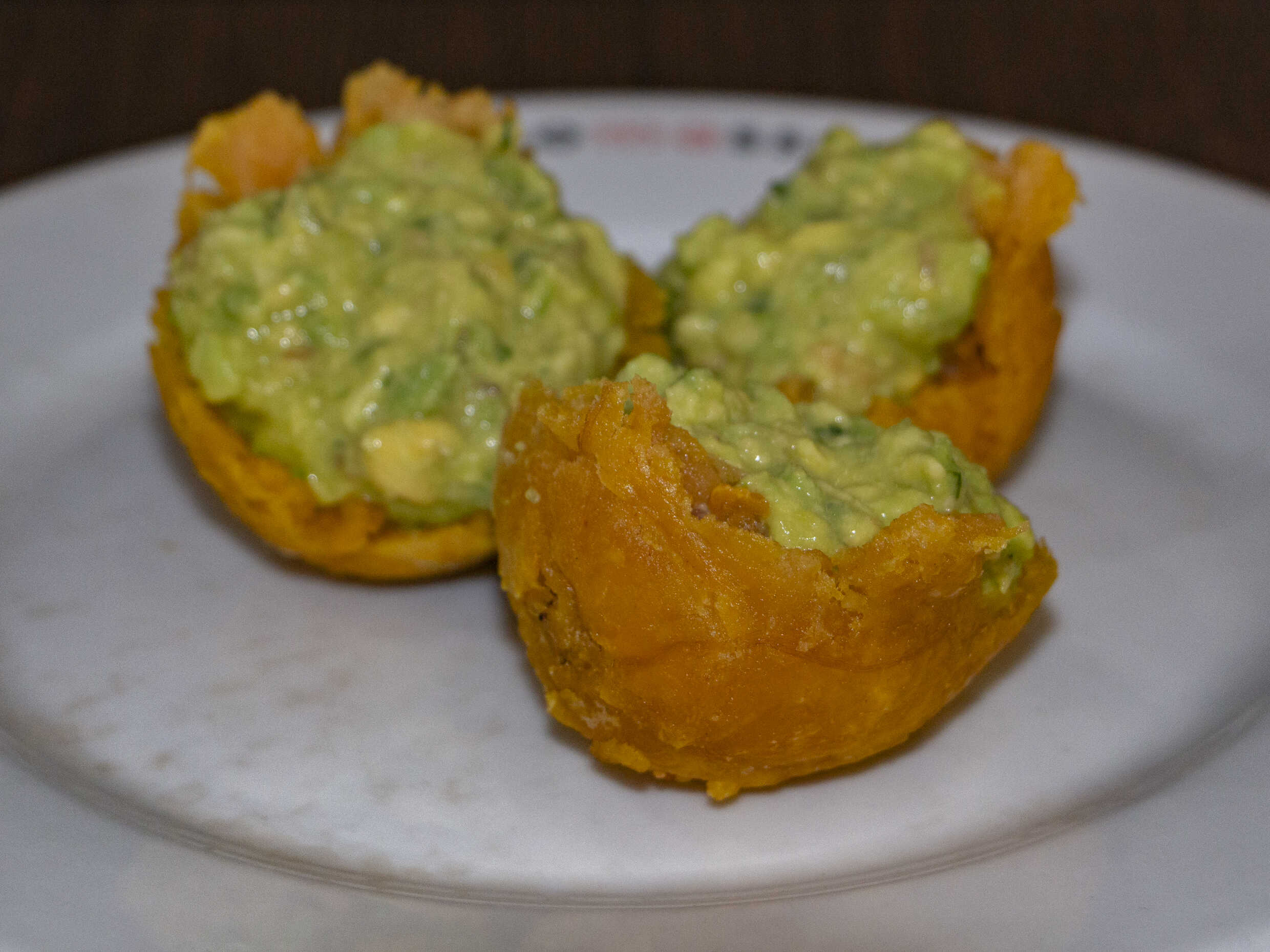 Papas a la francesa de 120 g, canastillas de plátano maduro con guacamole o madurito picado.