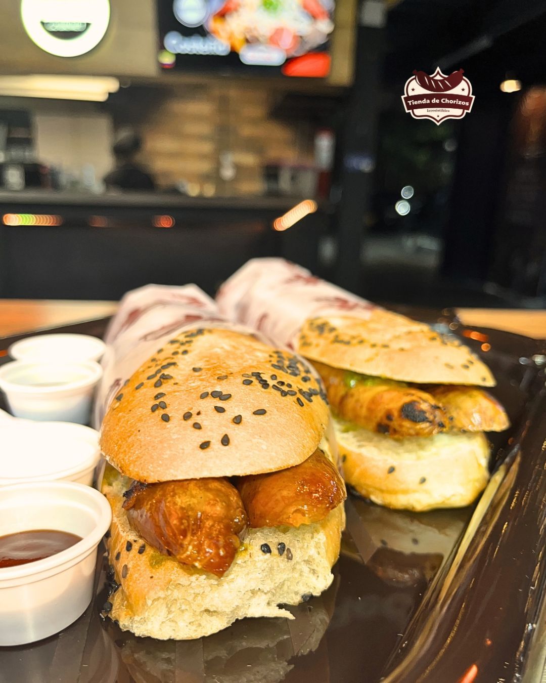 Pan de masa madre, chorizo argentino y salsa de cilantro de la casa.