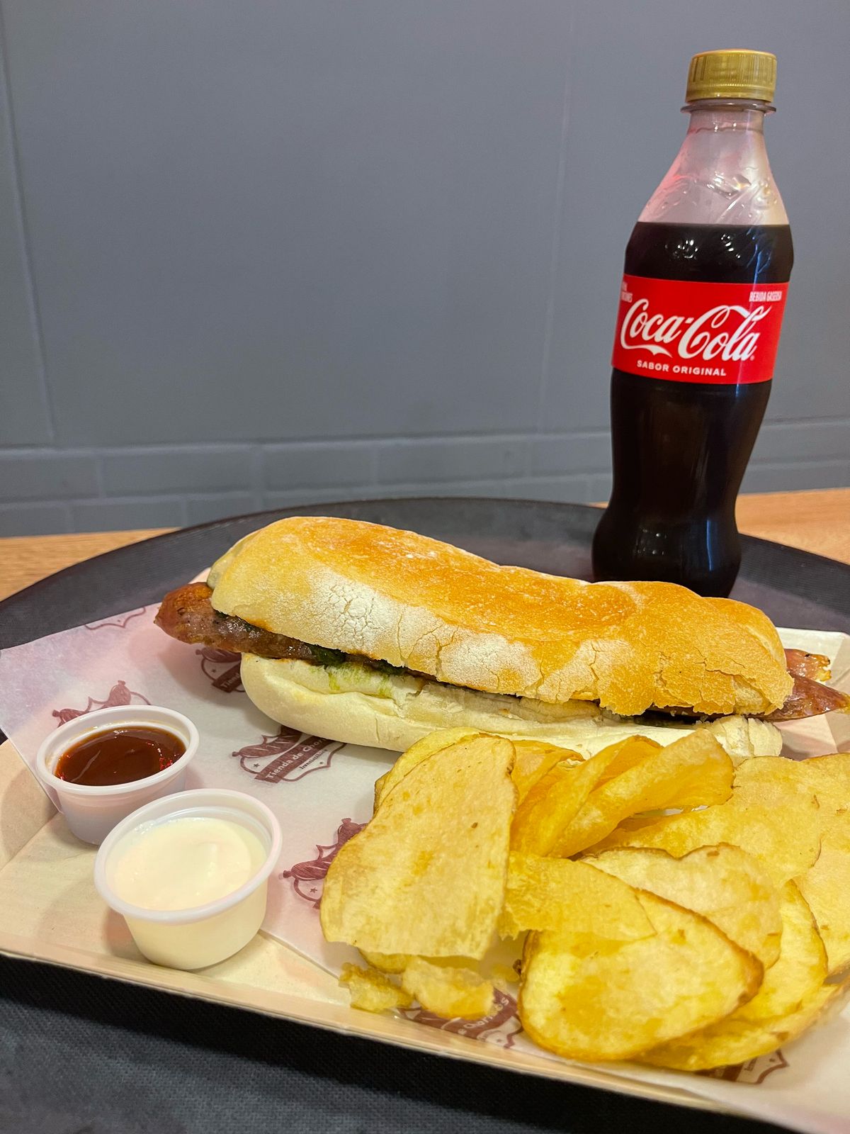 Súper combo de choripan argentino, acompáñalo con papas chips y gaseosa a tu elección.