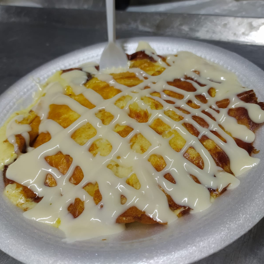 Pan,huevo, full tocineta, full queso mozarella, pepinillo, ripio de papas y salsas a elecion. io de papa+Salsas
