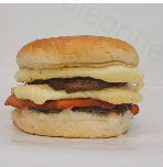 Pan , doble carne de hamburguesa, doble tocineta, doble queso, ensalada de la casa, ripio de papas, cebolla y salsas de la casa.