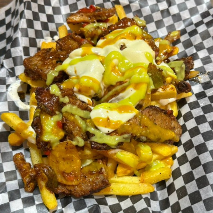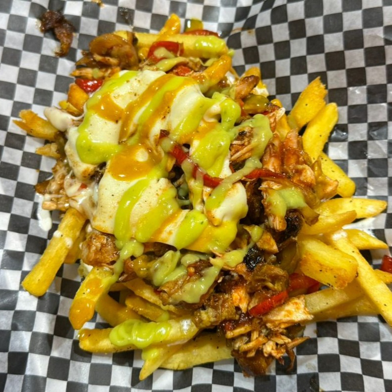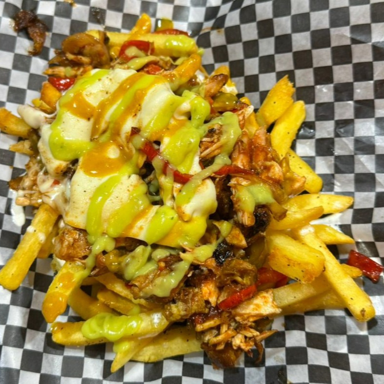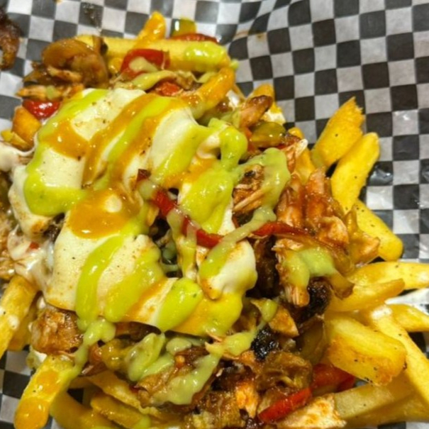 Papas fritas, cubiertas con pollo desmechado y escabeche de pimientos en salsa barbacoa especial. Se complementan con abundante queso fundido, guacamole fresco, salsa de queso chédar y nuestra exclusiva mezcla de salsas de la casa, creando una experiencia crujiente y cremosa en cada bocado.