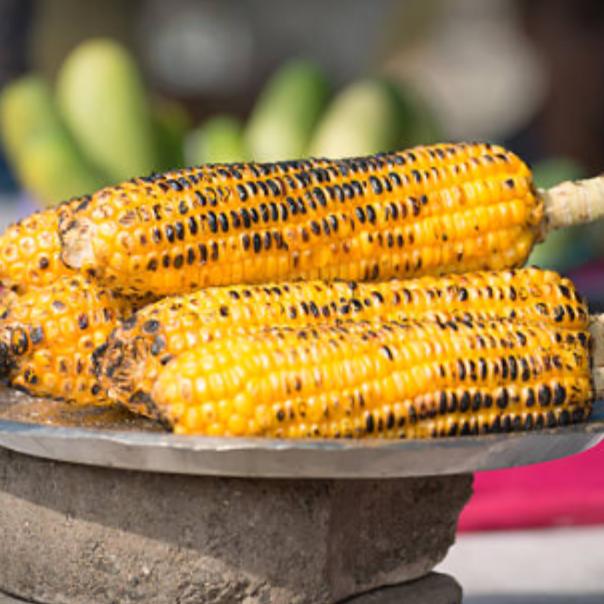 Trozos de Mazorca de maíz doradas al carbón, untadas con mantequilla y especias, ideales para acompañar cualquier corte.