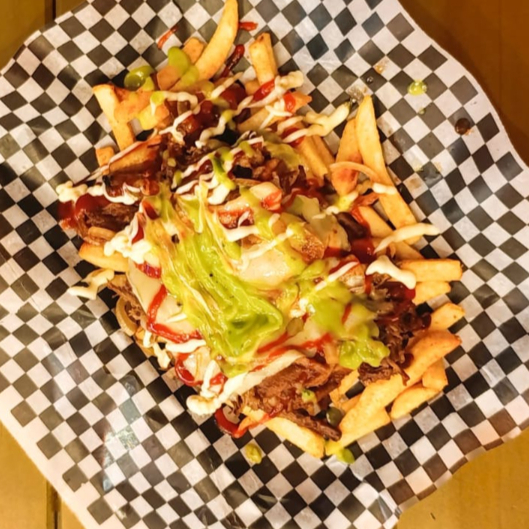 Papas fritas doradas y sazonadas al estilo especial de la casa, cubiertas con Brisket desmechado, preparada artesanalmente con escabeche de pimientos y salsa barbacoa bourbon. Se acompañan de queso fundido, guacamole fresco, salsa de queso chédar y nuestra salsa exclusiva.