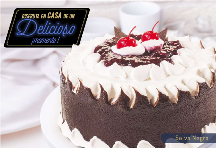Es una torta con bizcocho esponjoso de chocolate, remojada con sirope, relleno de mora, cubierta en crema tipo chantilly.