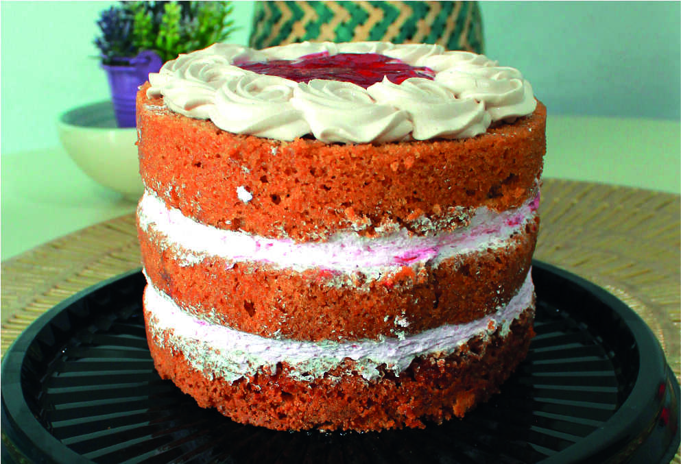 • Torta de vainilla con arequipe en el centro y mora, para 20 a 25 porciones.