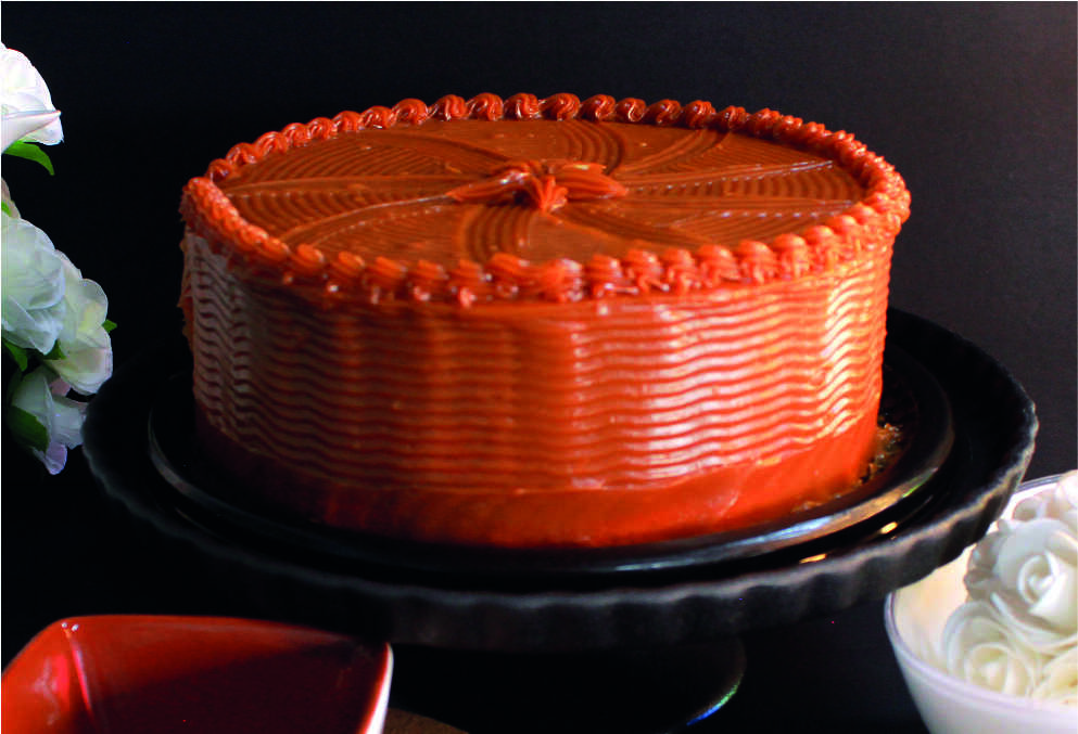 Torta de chocolate con centro de arequipe en la cubierta de chocolate, 10 a 12 porciones.